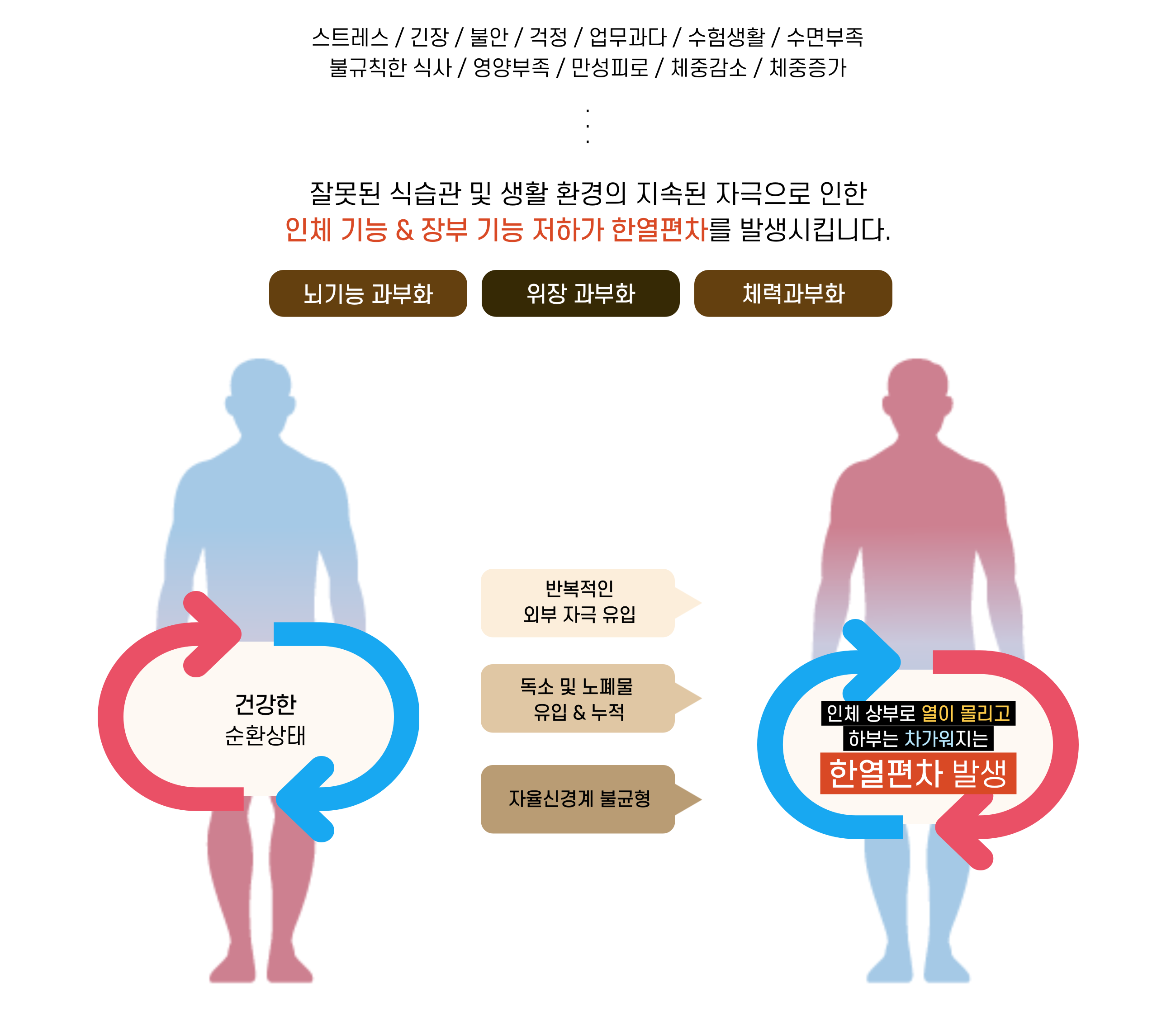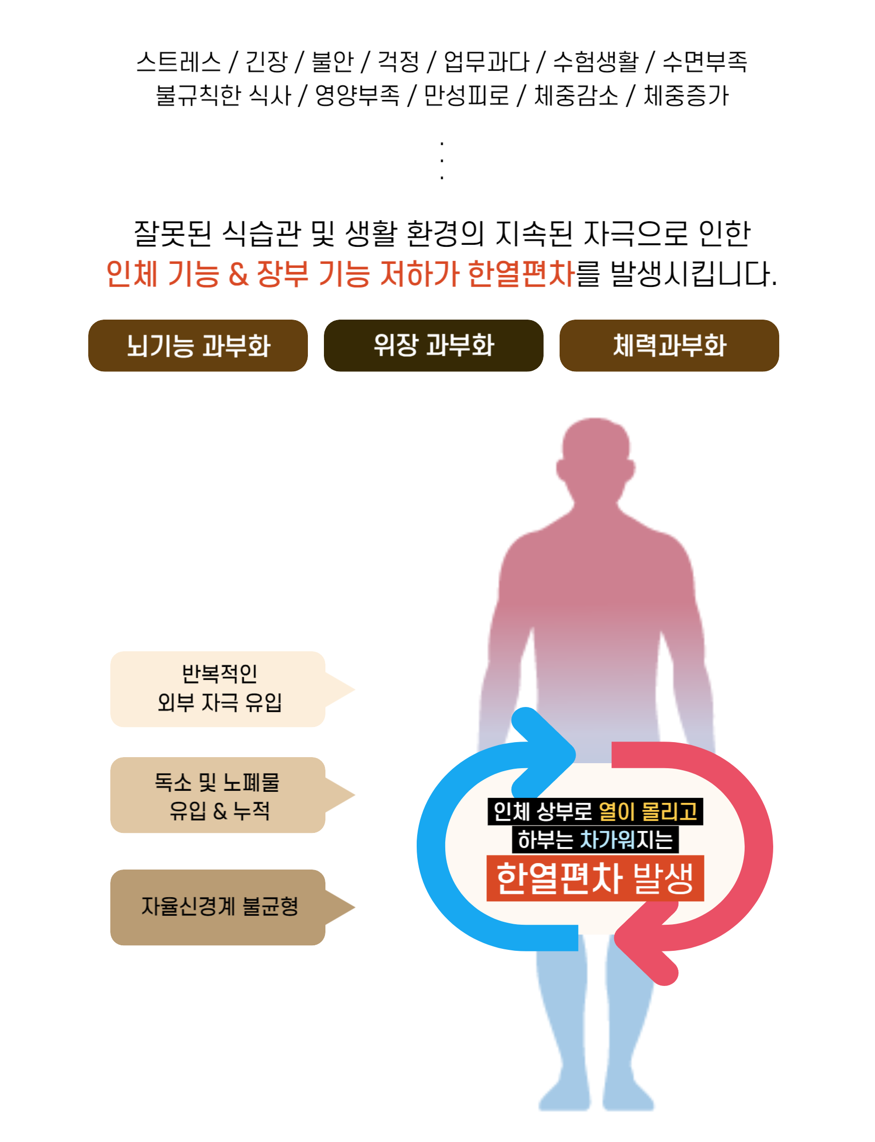 한열편차로 인해 자율신경 균형이 무너지면 전신에 영향을 끼칩니다.