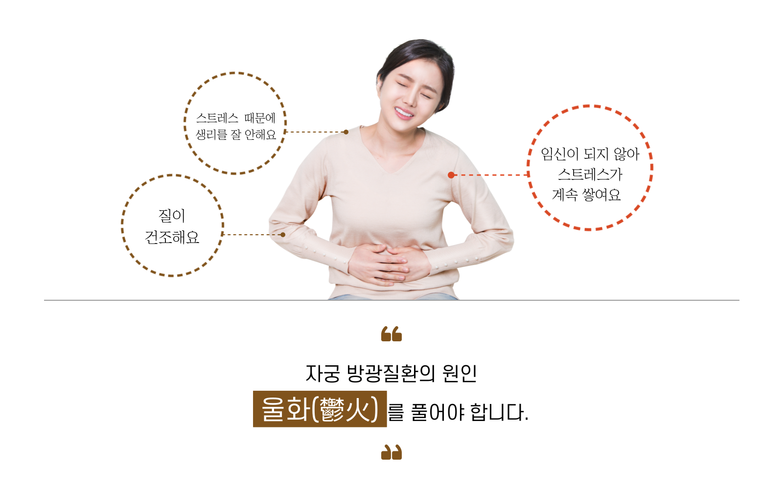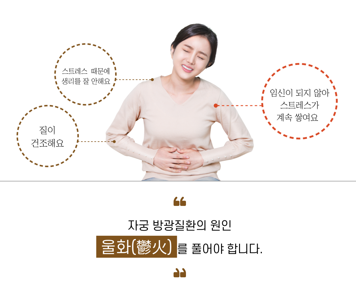 각 원인들이 복합적으로 작용하여 자궁의 울화를 유발합니다.